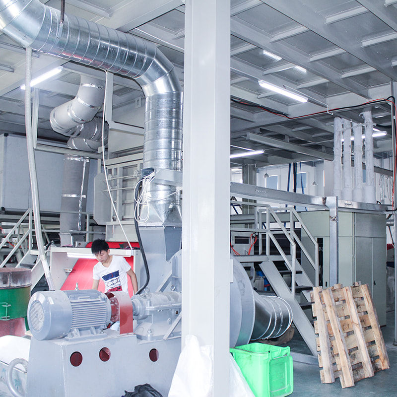 فرآیند ریسندگی: ذوب رنگی سپس توسط پرتوی ریسندگی به رشته ها می چرخد ​​و پایه و اساس پارچه غیر بافته را تشکیل می دهد.